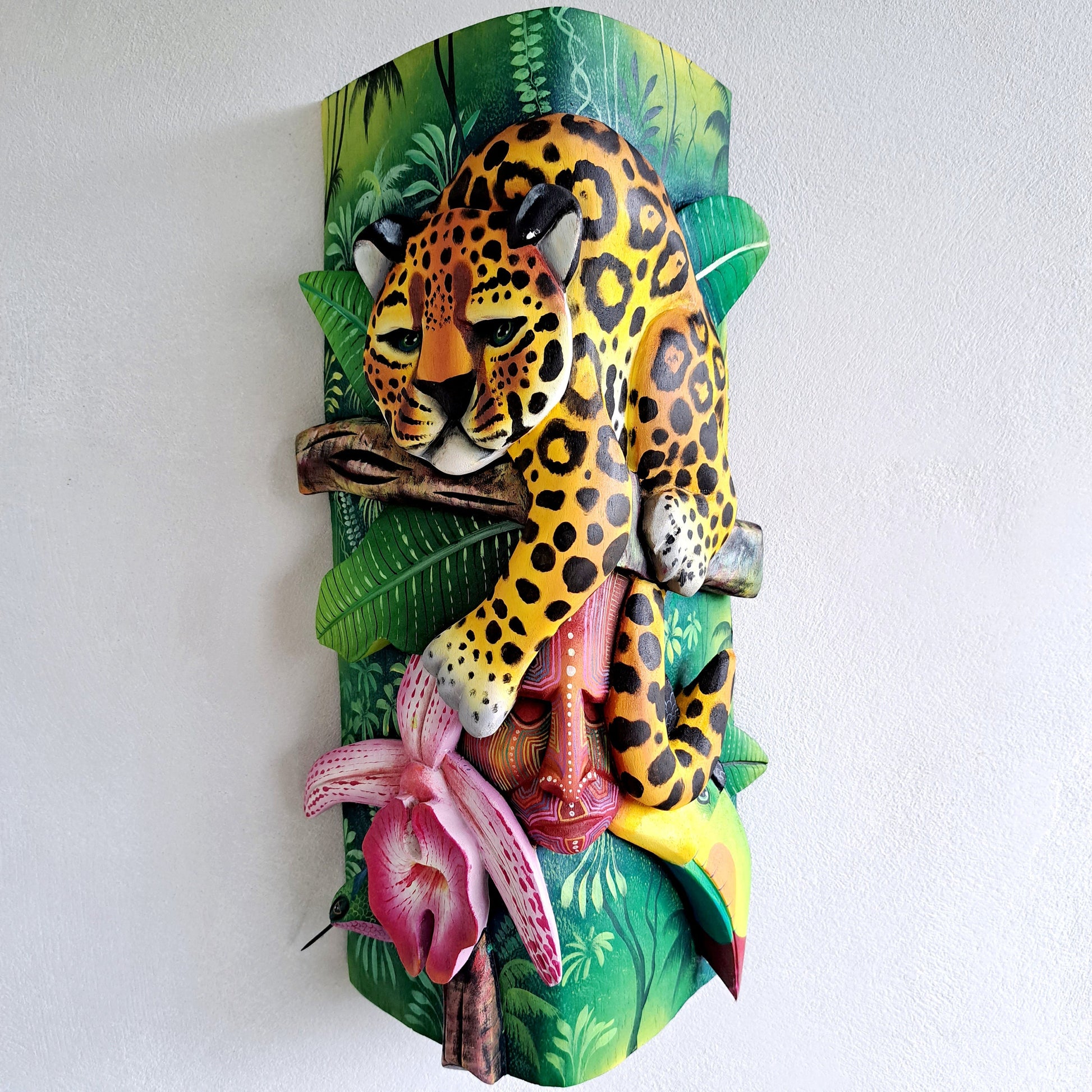 Authentic Boruca mask, birds, orchid, jaguar, wooden mask, tribal art Costa Rica, available mask