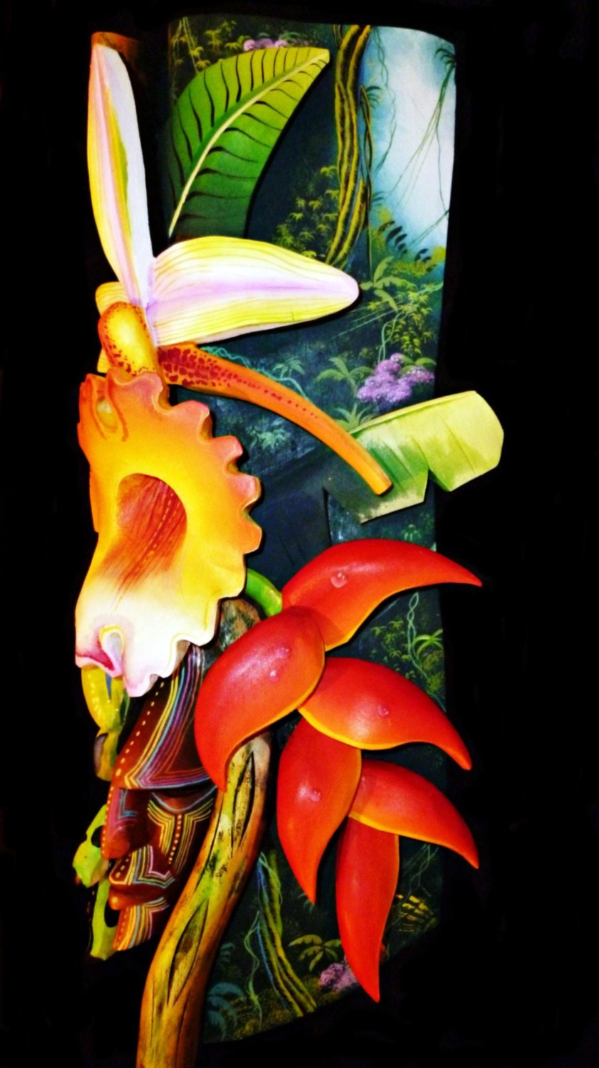 This mask is a representation of the Flora and Fauna of Costa Rica, from an indigenous perspective, adding natural elements of the forest, sunsets, sunrises and other environments are represented in the backgrounds of each mask. This mask can be customized by adding flora and fauna according to the client's wishes.